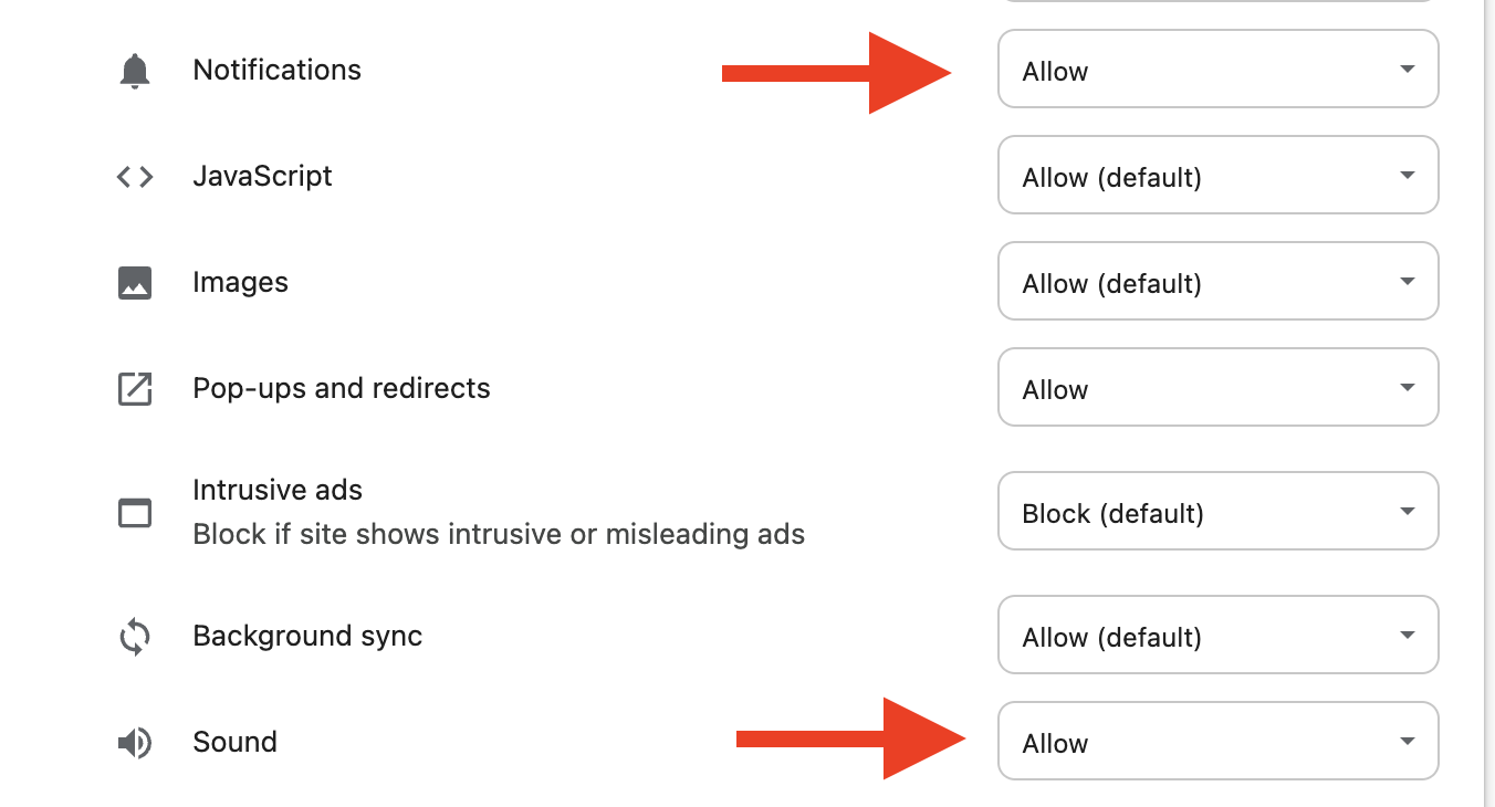 Make sure that “Notifications” are On for your browser.