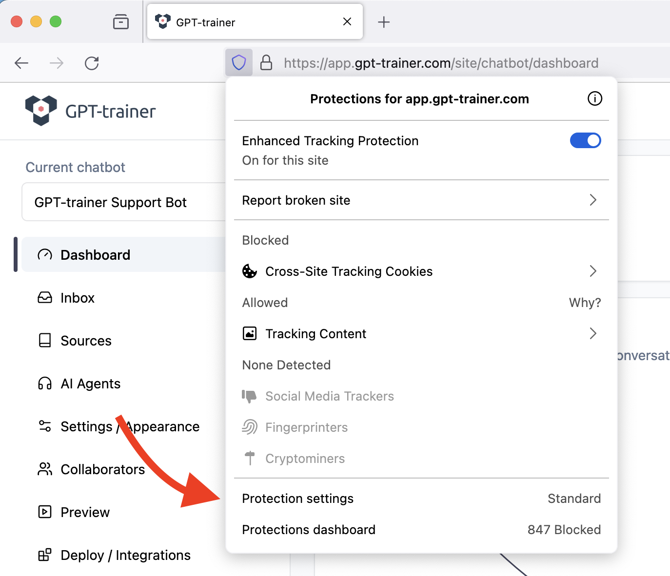 “Settings for app.innoChat.com”.