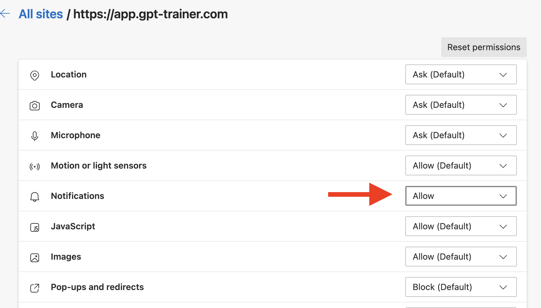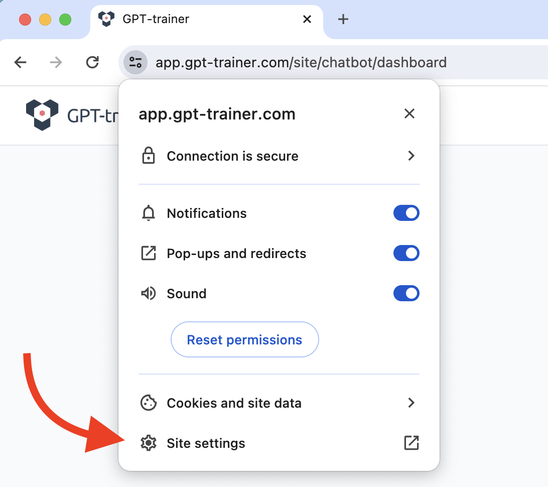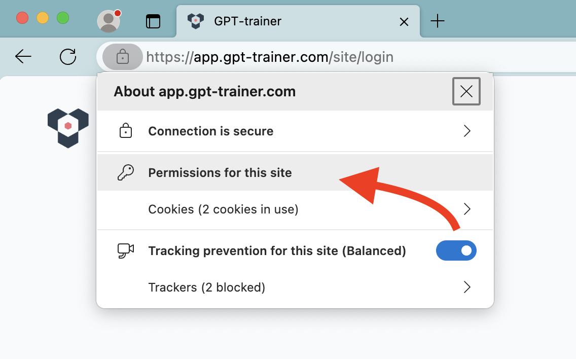 “Permissions for this site”.