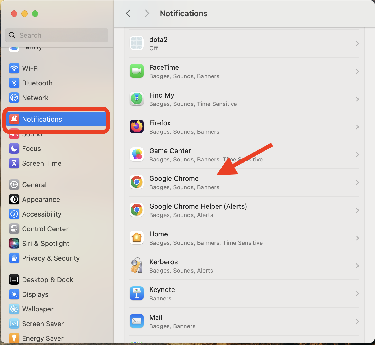 Choose “Notifications” option and select the browser you wish to use.
