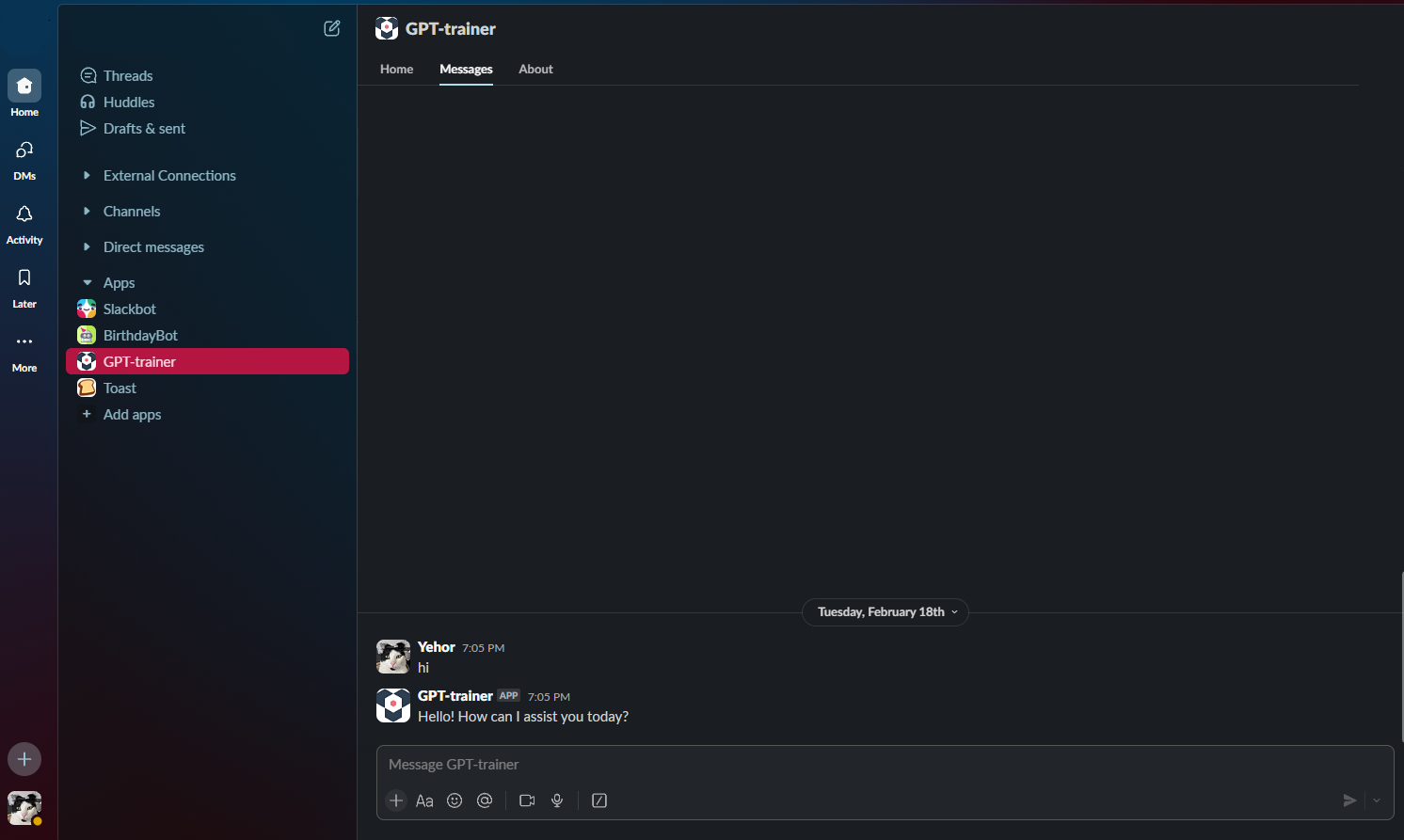 After the chatbot has been selected, proceed to the “Messages” section and ask your chatbot some cool things.